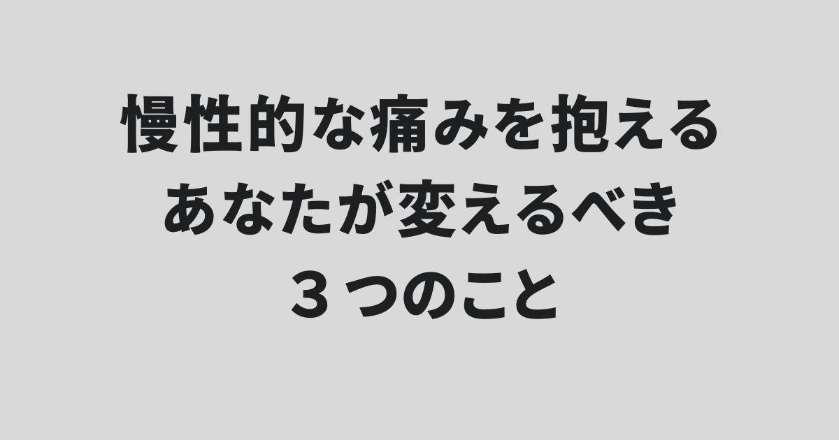 こんにちは。修です。 今回の記事は「慢性痛を改善していく為にあなたに必要な3つのこと」をお話していく…